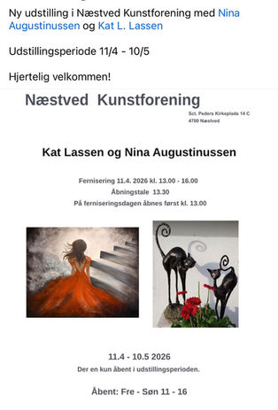 Min nye vinduesudstilling på Hjultorvet i Næstved. Gå forbi og scan QR koderne og lyt til fortællingen om malerierne. Udstillingen er i hele marts måned. Oplev ligeledes 30 af mine malerier på den nye udstilling i Næstved Kunstforening. Åbner 11/4-10/5 2026.